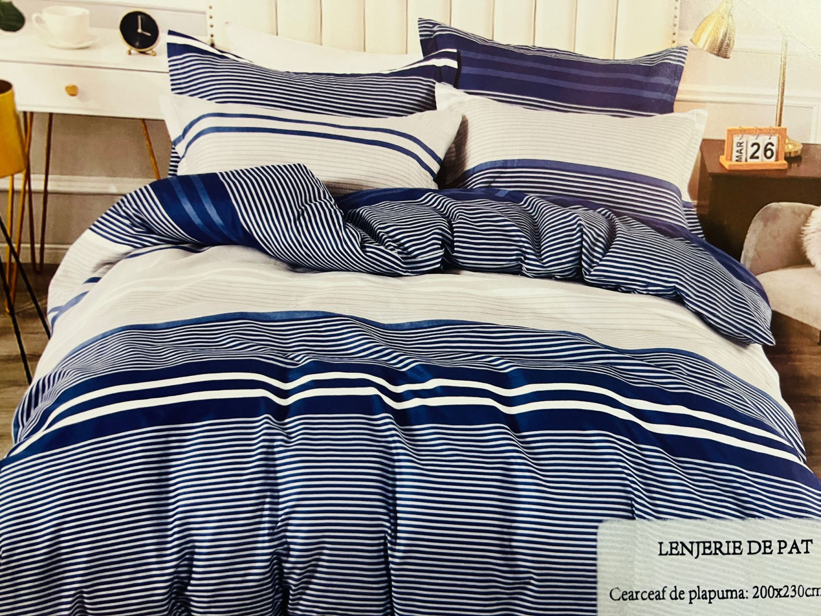 LENJERIE SET COMPLET – 4 PIESE Setul conține: – cearceaf pentru pat 200x220cm – cearceaf pentru pilota 180x220cm – două fețe de pernă 50x70cm Cearceaful pentru pilotă se închide cu fermoar, iar fețele de pernă sunt petrecute parte peste parte suficient astfel încât perna să nu iasă din fața de pernă. Fețele de pernă pot fi diferite față de poza de prezentare, în funcție de cum este cro