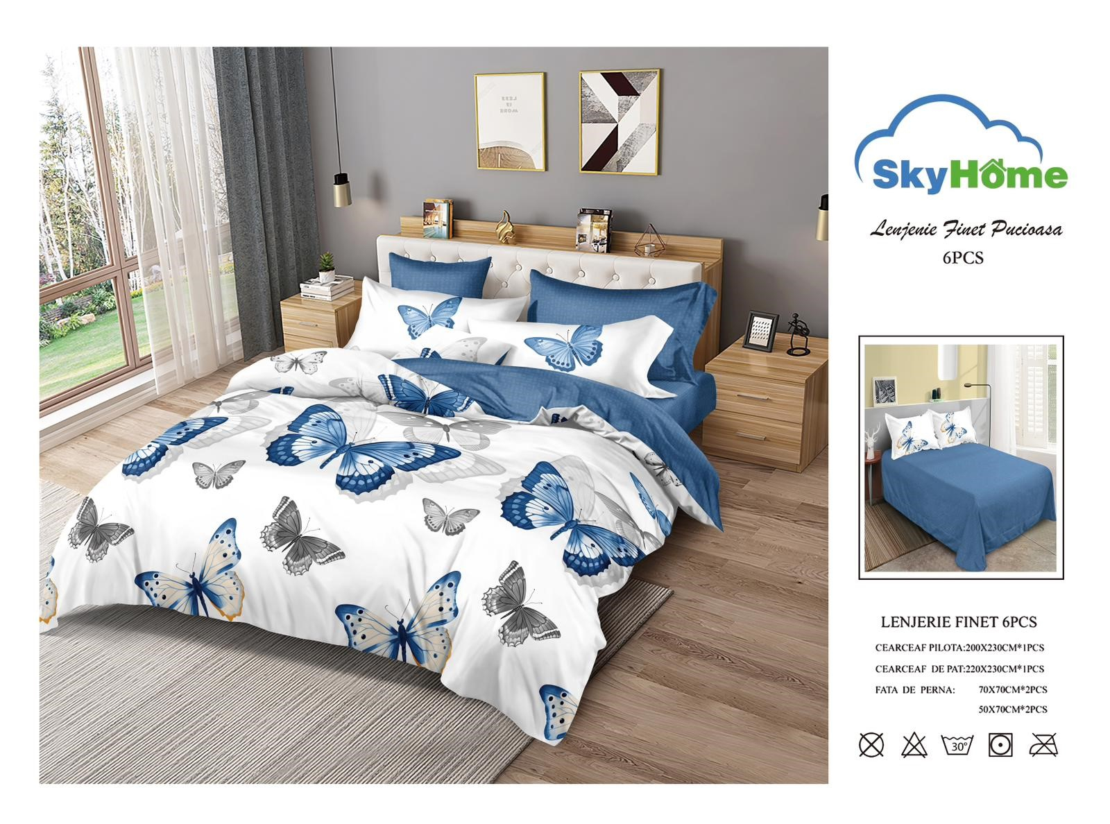 Materialul din care este confectionată lenjeria este de calitate superioara cu o textură fină, moale și foarte placută la atingere. GARANTAT NU SE DECOLOREAZA DACĂ SE RESPECTĂ INSTRUCȚIUNILE DE INTREȚINERE. Produsul este ambalat in husa de plastic transparenta. Pachetul conține: – cearsaf de pat: 230 x 220 cm ±10cm – cearsaf de pilota: 200 x 220 cm ±10cm – fata perna (2 buc): 50 x 70 cm ±10cm – fata perna (2
