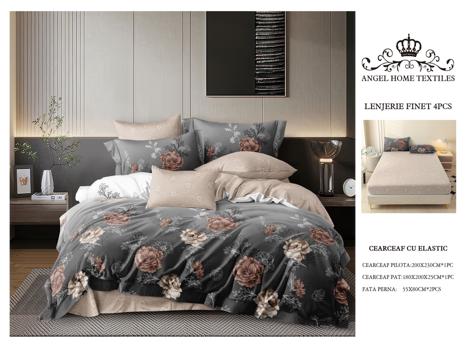 Materialul din care este confectionată lenjeria este de calitate superioara cu o textură fină, moale și foarte placută la atingere. GARANTAT NU SE DECOLOREAZA DACĂ SE RESPECTĂ INSTRUCȚIUNILE DE INTREȚINERE. Produsul este ambalat in husa de plastic transparenta.   Pachetul conține: 1 x Cearceaf pilota: 200 x 230 cm; 1 x Cearceaf de pat: 180 x 200 cm;- CU ELASTIC 2 x Fata de perna: 50 x 70 cm. Lenjeria este ideala pentr