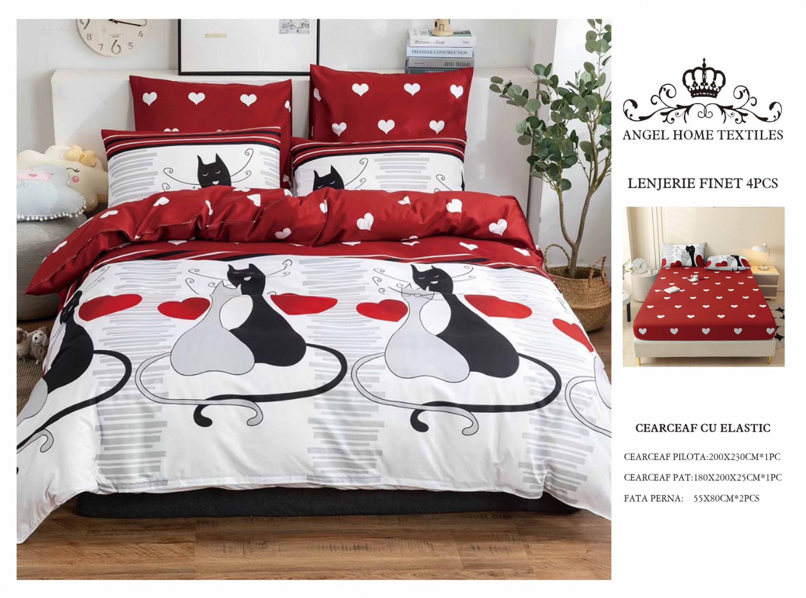Materialul din care este confectionată lenjeria este de calitate superioara cu o textură fină, moale și foarte placută la atingere. GARANTAT NU SE DECOLOREAZA DACĂ SE RESPECTĂ INSTRUCȚIUNILE DE INTREȚINERE. Produsul este ambalat in husa de plastic transparenta.   Pachetul conține: 1 x Cearceaf pilota: 200 x 230 cm; 1 x Cearceaf de pat: 180 x 200 cm;- CU ELASTIC 2 x Fata de perna: 50 x 70 cm. Lenjeria este ideala pentr