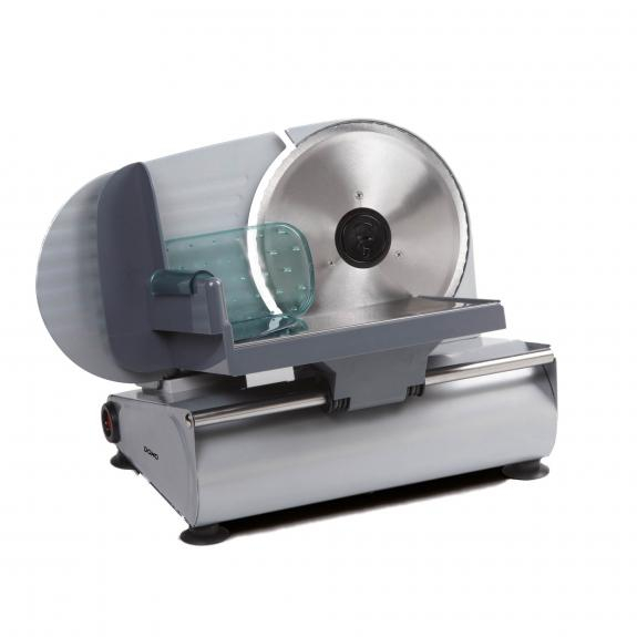Lama usor de indepartat Lama de otel inoxidabil usor zimtata pentru felierea painii, carnii, branzei … (ø 19 cm) Setarea continua a grosimii feliei variabile (0-15 mm) Foarte stabil cu 4 picioare de cauciuc Include impingator de alimente Intretinere usoara