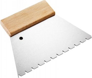 Spaclu zimtat pentru aplicarea adezivilor Bona versiune grosiera.Inox cu maner de lemn.Marime: 180 x 150 mmDimensiune: 1000 G (aprox. 1000 g/m²)Ambalaj: 10 buc / bax.
