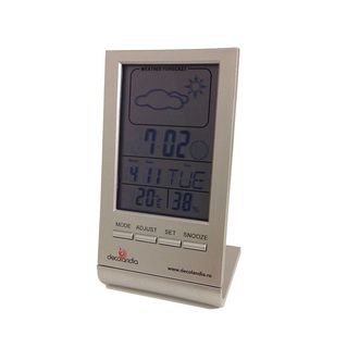 Dimensiuni: 108 x 57 mm O statie meteo ambientala cu un aspect ergonomic cu un format compact cu textura cromata si afisaj cu mai multe functii.  Functiile statiei: Higrometru (cu functie de umiditate minima si maxima)Termometru (cu afisare optionala in grade Celsius sau Fahrenheit)Calendar perpetuuCeasAfisare fazele lunii Tip baterie: LR1130/AG10