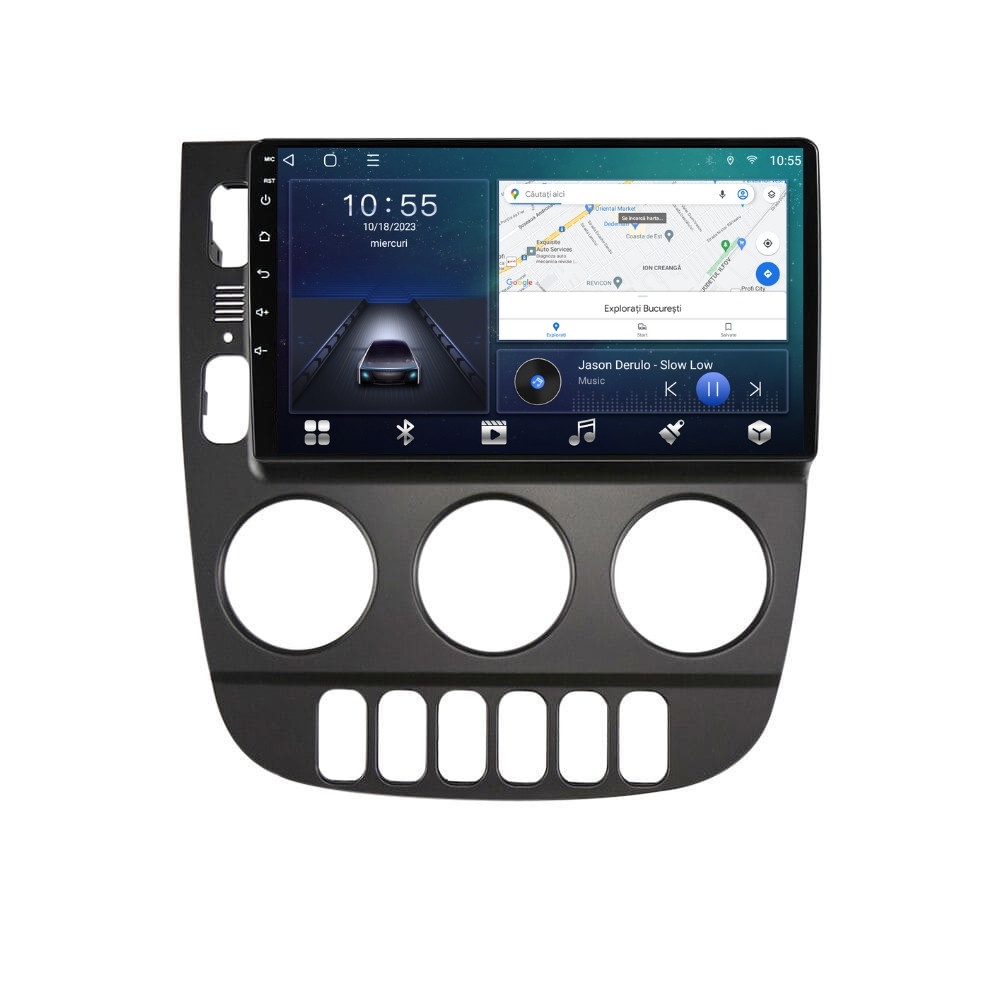 Sistem de operare: Car Android 14 cu meniu în peste 60 de limbi (inclusiv limba română) Procesor: Octa Core ARM Cortex A55 1.6GHz Memorie internă: 2GB RAM + 32GB stocare (extensibilă prin 2 sloturi USB de maxim 64GB) Display: Touchscreen 9 inch QLED HD 1280×720, multi-touch, format 16:9, cu margini curbate și tehnologie 2.5D Chipset GPS: Samsung Sirf Star IV cu 48 de canale (antenă GPS inclusă) Fast Boot: Navigația pornește instant în momentul în care se pune contactul Conectivitate: Slot SIM