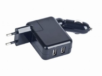 Alimentator auto+priza universal 2xUSB, tensiune iesire: 5V DC cu max.2A, compatibil cu dispozitivele alimentate prin USB, Negru lucios, GEMBIRD (MP3A-UC-ACCAR2)