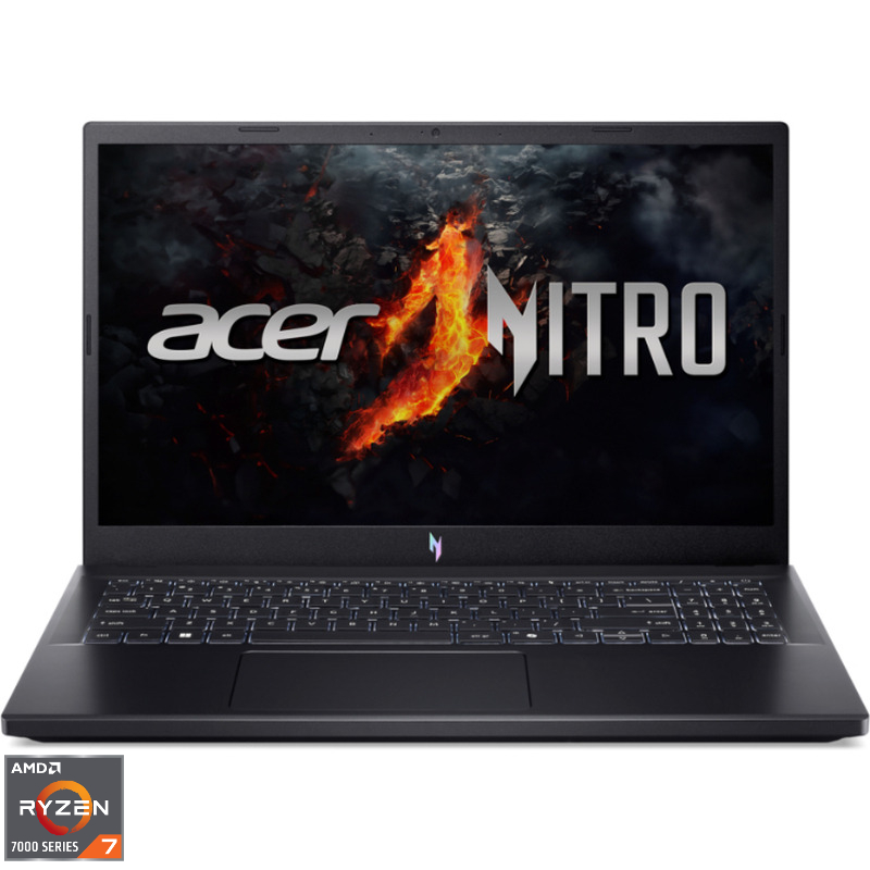 Laptop Acer Gaming 15.6” Nitro V 15 ANV15-41, FHD IPS 165Hz, Procesor AMD Ryzen™ 7 7735HS (16M Cache, up to 4.75 GHz), 16GB DDR5, 512GB SSD, GeForce RTX 3050 6GB, No OS, Obsidian Black