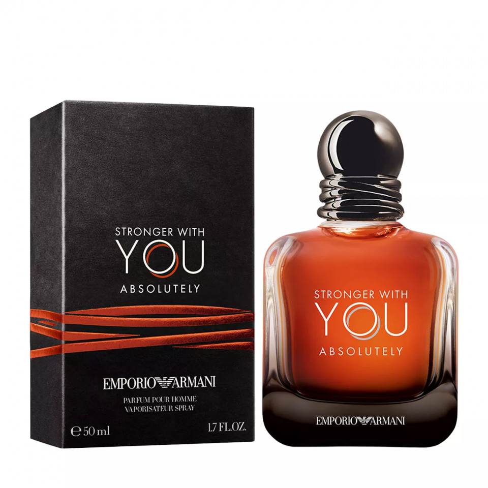Emporio Armani Stronger With You Absolutely de Giorgio Armani este un parfum Ambra Fougere de barbati lansat in 2021. Gama Stronger With You Absolutely continuă povestea celebrului Emporio Armani Stronger With You. Noua gamă este întruchipată în cea mai intensă formă, și nu doar prin conținutul său. Se distinge și prin culoarea foarte închisă în partea de jos a flaconului, care semnifică mirosul puternic al parfumului. Culoarea de rom aduce un omagiu ingredientului conținut în parfum. Acest