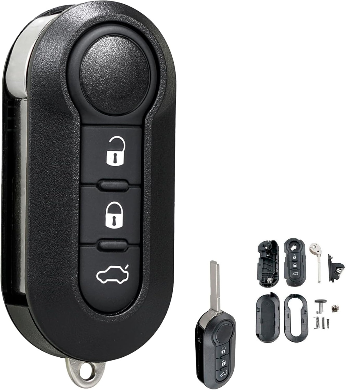 ✔ Carcasa de inlocuire pentru cheie auto flip (tip briceag) cu 3 butoane, ideala pentru inlocuirea carcasei vechi, cu butoane deteriorate sau carcasa uzata.✔ Include lama noua, netaiata – se poate taia la orice lacatus auto sau service autorizat.✔ Nu contine electronica interna, cip sau baterie – se transfera componentele din cheia originala.✔ Material ABS de calitate superioara, testat pentru durabilitate si rezistenta la uzura.✔ Se monteaza usor – doar transferi placa electronica, cipul si