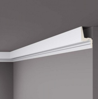 Confera o eleganta desavarsita locuintei este proiectata intr-o maniera moderna special conceputa pentru a se folosi la iluminatul indirect impreuna cu banda LED.Are stabilitate dimensionala fiind rezistent in timp la socuri si la umezeala.Lipirea este recomandata cu adezivul profesional de profile decorative pentru interior: ADEFIX sau ADEFIX PLUS.Adezivii sunt usor de aplicat si pot fi vopsiti dupa intarire.Cornisa poate fi vopsita in orice culoare folosind vopsea fara solvent a