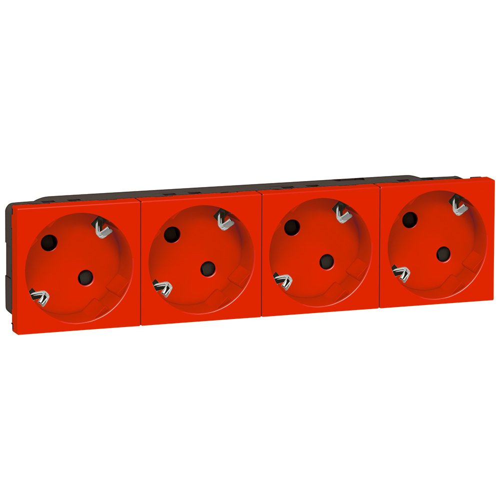 Priza multisuport 4x2p+T, orientare 45 grade, rosie Legrand Mosaic 077274