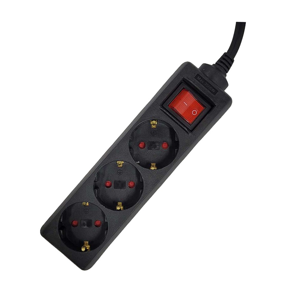 PRELUNGITOR SPACER, Schuko x 3, conectare prin Schuko (T),cu intrerupator cablu 1.5 m, 16 A, protectie copii, Negru, „PP-3-15B” (timbru verde 0.18 lei)
