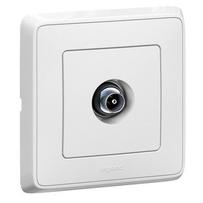 Mecanism priza TV stea, suport metalic, fixare gheare sau surub, culoare alb