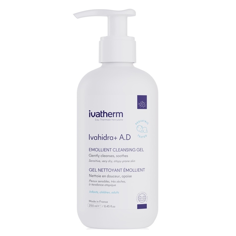 Gelul de spălare emolient cu efect calmant Ivahidra+ A.D., Ivatherm este un produs de igienă delicat și eficient, special formulat pentru curățarea pielii sensibile, uscate sau atopice. Cu o textură blândă și ingrediente atent selecționate, acest gel de spălare nu agresează pielea, ci o protejează, oferindu-i confort și calmare încă din timpul igienei zilnice. Formula sa este lipsită de parfum și adaptată pentru a respecta fragilitatea pielii foarte sensibile, inclusiv a bebelușilor și