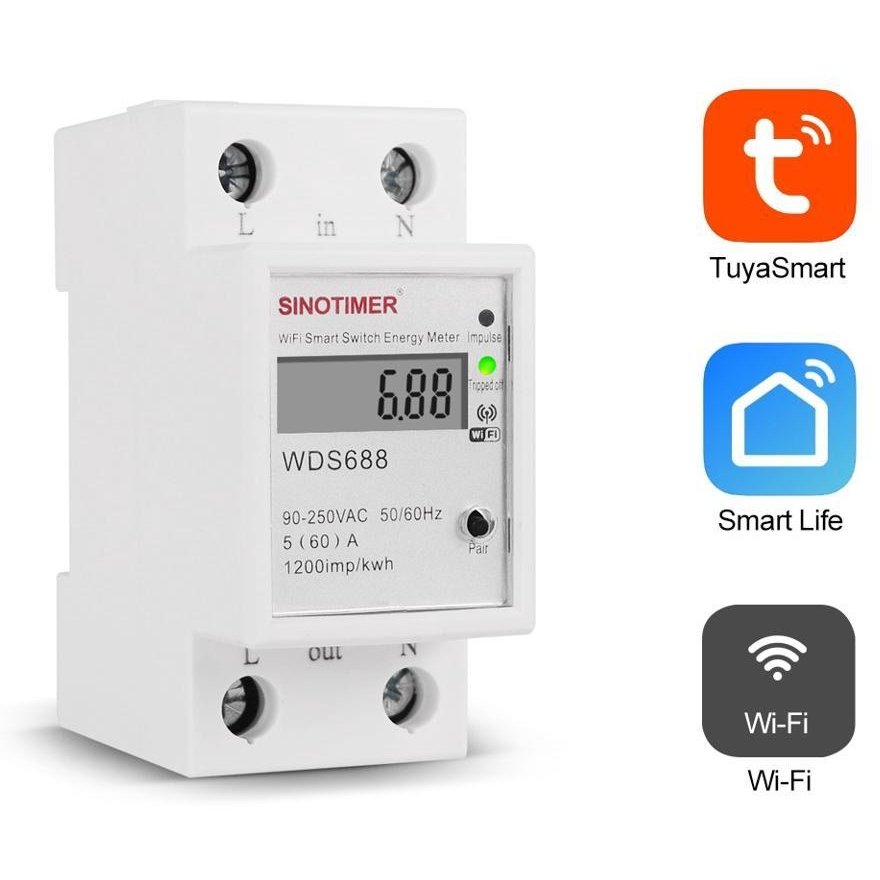 Comutator monofazat SINOTIMER WDS688 5-60A 230V Smart WiFi Control din aplicatia telefon mobil multifunctional