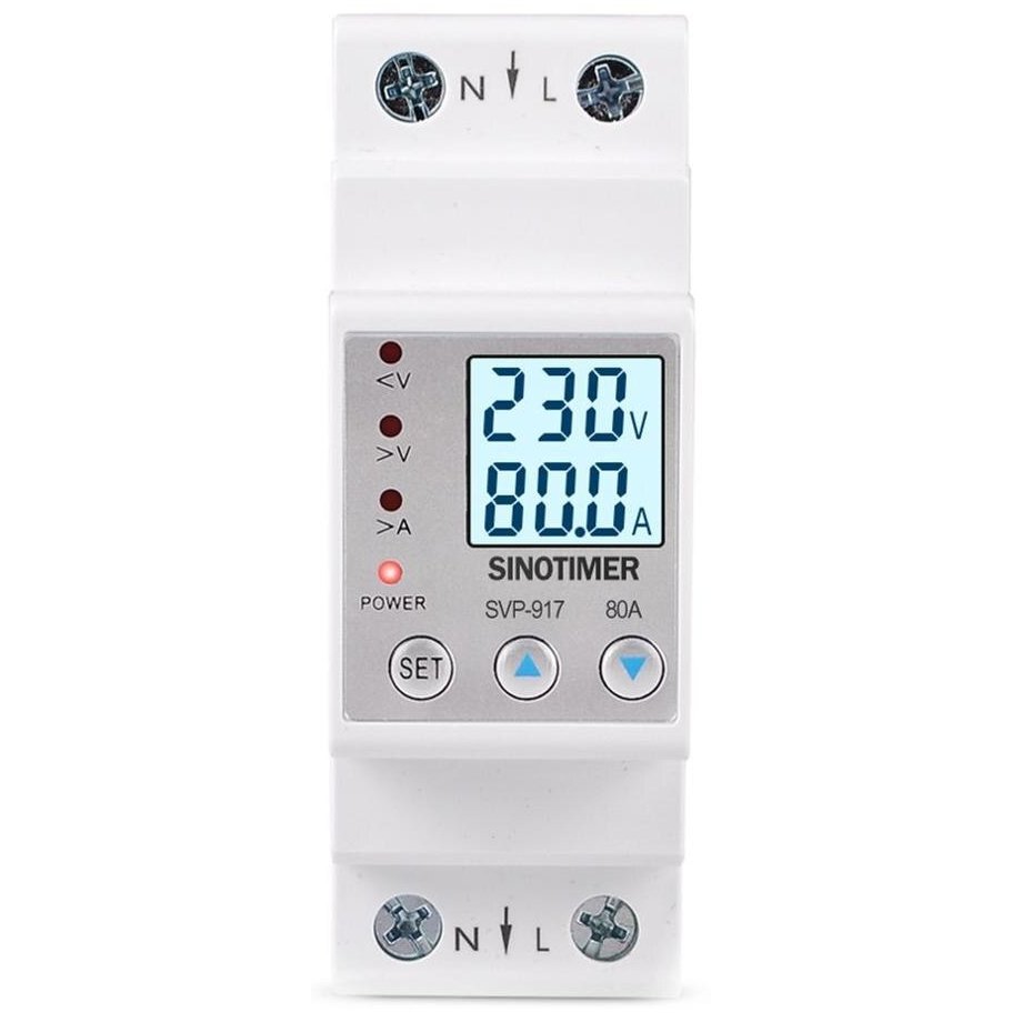 Releu siguranta digitala protectie tensiune,Sinotimer, intre 1- 80A programabil ,ecran LED, arata consum kWh, SVP-917-80A