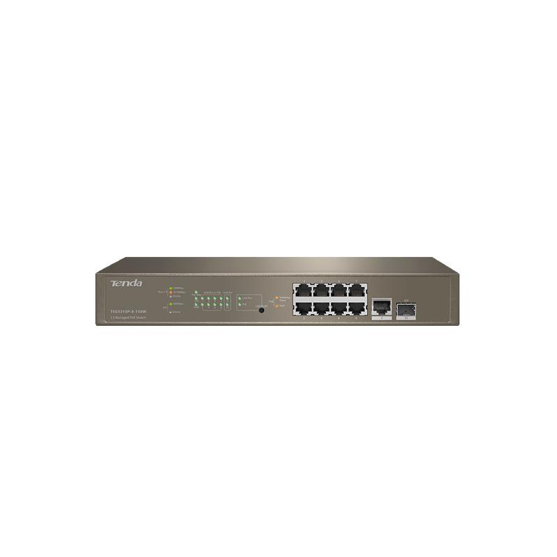 Tenda 10-Port Gigabit Ethernet managed L3 POE switch, TEG5310P-8-150W; Standard and Protocol: IEEE802.3� IEEE802.3u� IEEE802.3ab� IEEE802.3z� IEEE802.3x� IEEE802.3af/at� IEEE802.1p� IEEE802.1q� IEEE802.1w� IEEE