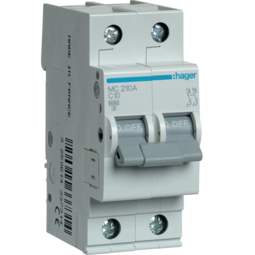 Siguranta automata 2P, 10A, 6kA, C Hager MC210A