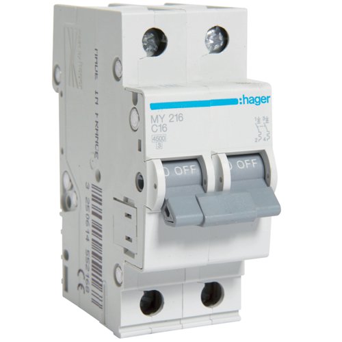 Siguranta automata 2P, 16A, 4,5kA, C, Hager MY216