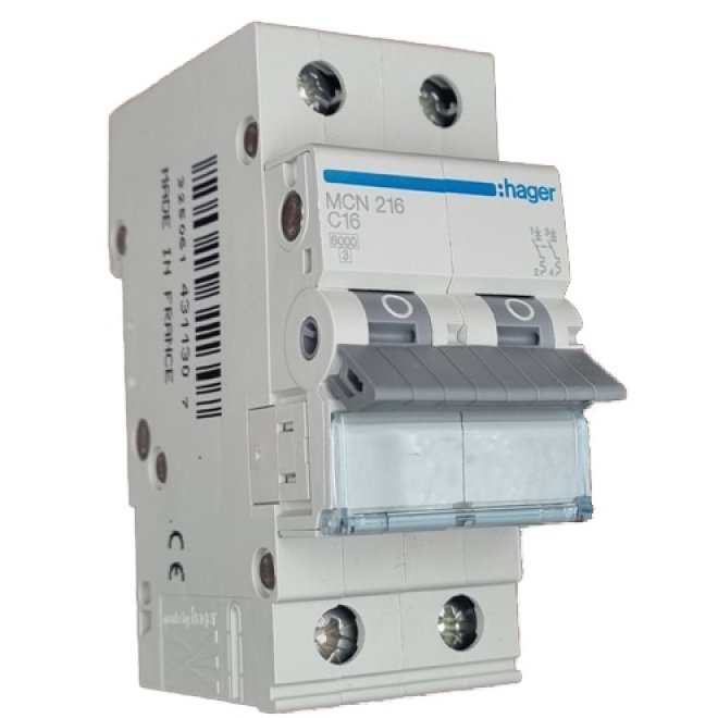Siguranta automata 2P, 16A, 6kA, curba C Hager MCN216