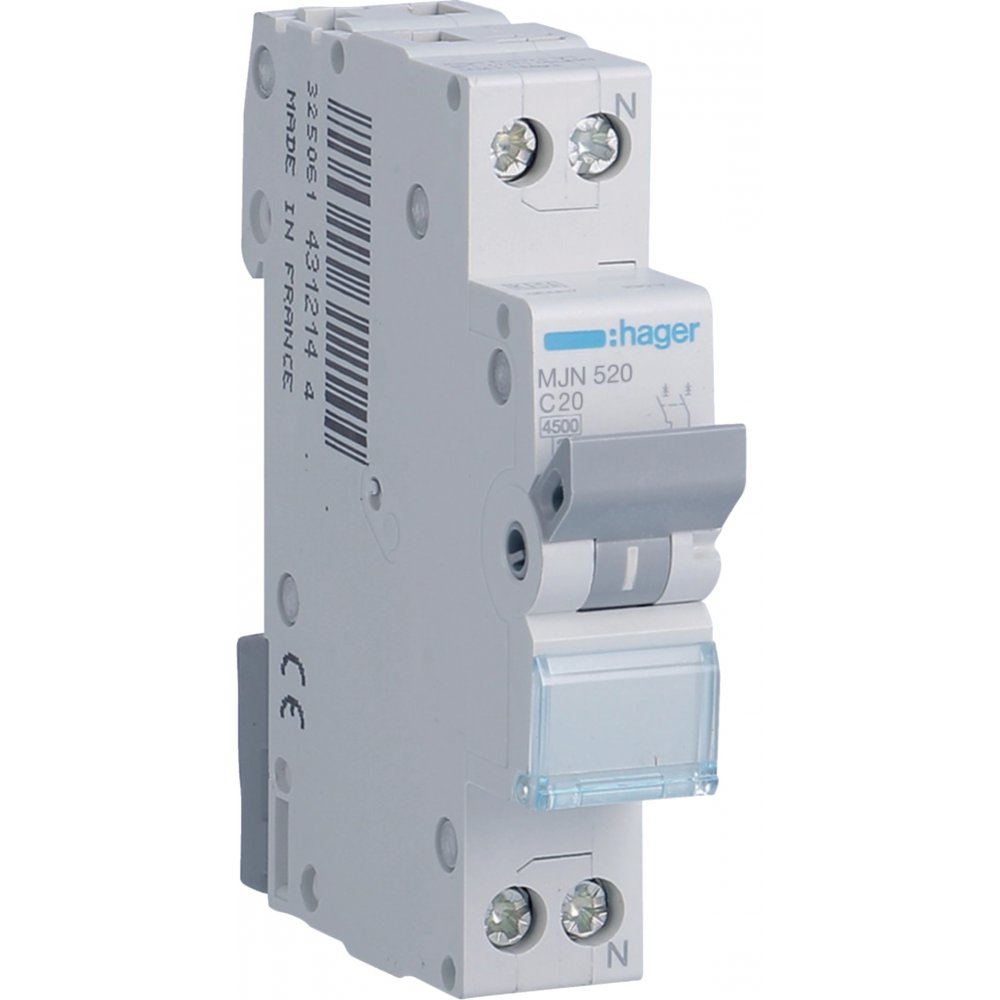 Siguranta automata 1P+N, 20A, curba C, 4.5kA Hager MJN520