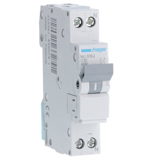 Siguranta automata 1P+N Hager MJ510J, curba C, 4.5 KA, 10 A