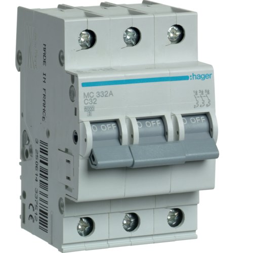 Siguranta automata 3P, 32A, 6kA, C Hager MC332A
