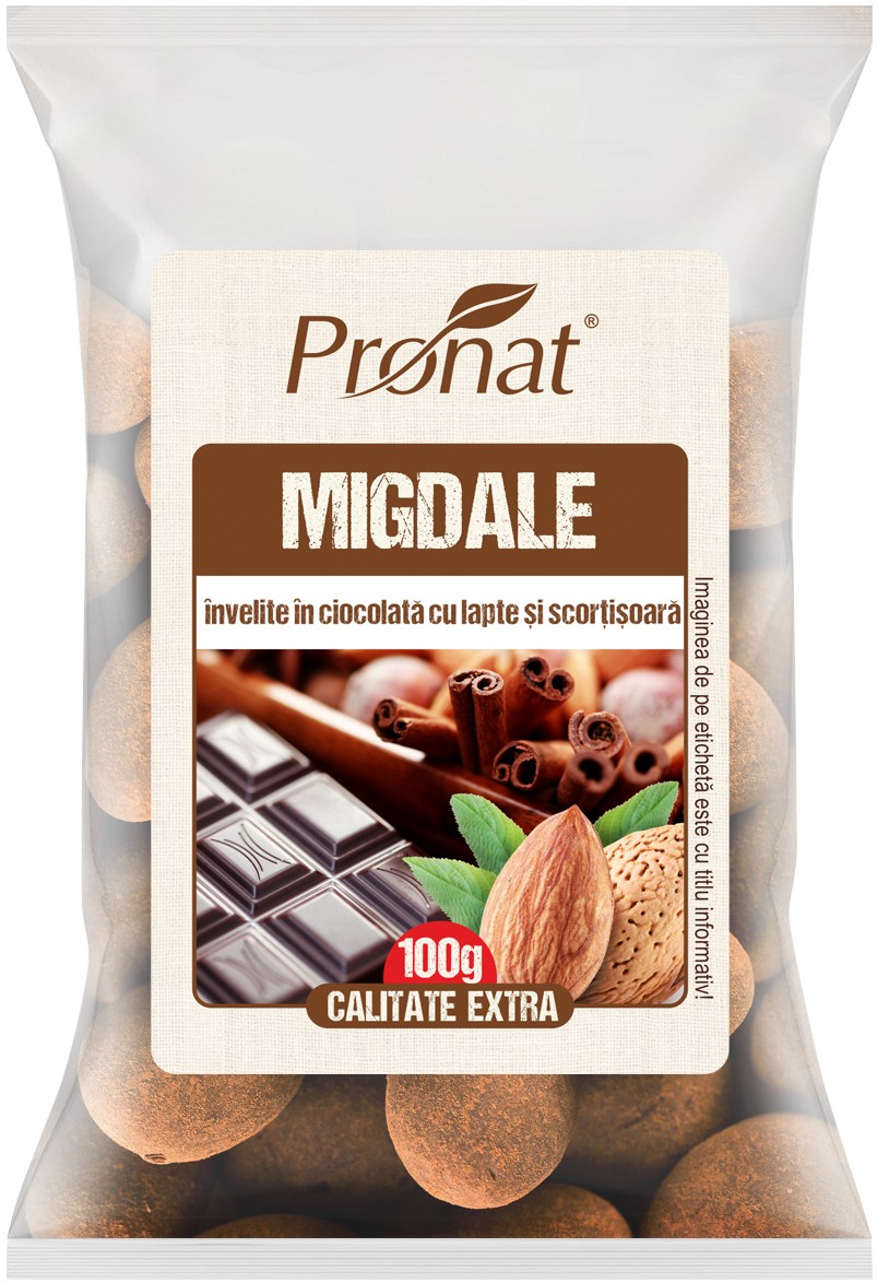 Migdale invelite in ciocolata cu lapte si scortisoara, 100g Pronat
