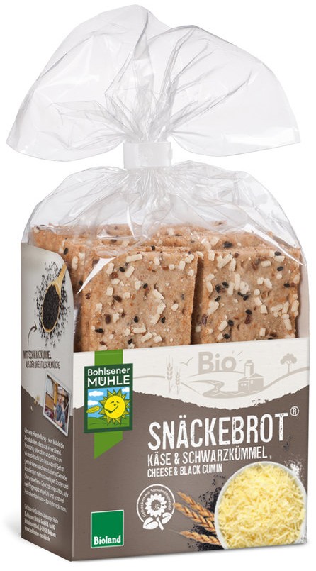 Paine bio crocanta cu cascaval si chimen negru, 200g Bohlsener Muhle