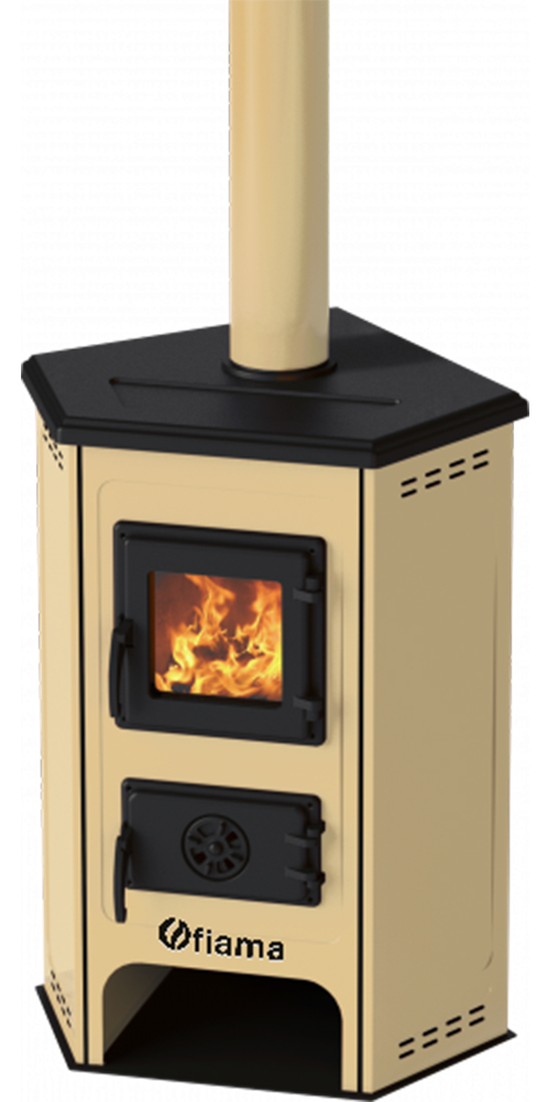 Semineu cu plita din fonta Fiama SD CORNER pe lemnebrichete si carbune putere 6 kW culoare crem