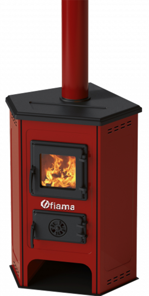 Semineu cu plita din fonta Fiama SD CORNER pe lemnebrichete si carbune putere 6 kW culoare red