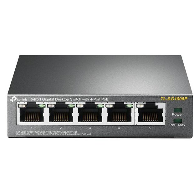 TP-LINK 5-Port Gigabit Desktop Switch with 4-Port PoE, TL-SG1005P, 5* 10/100/1000Mbps RJ45 Ports, AUTO Negotiation/AUTO MDI/MDIX, Standard: 802.3 af c