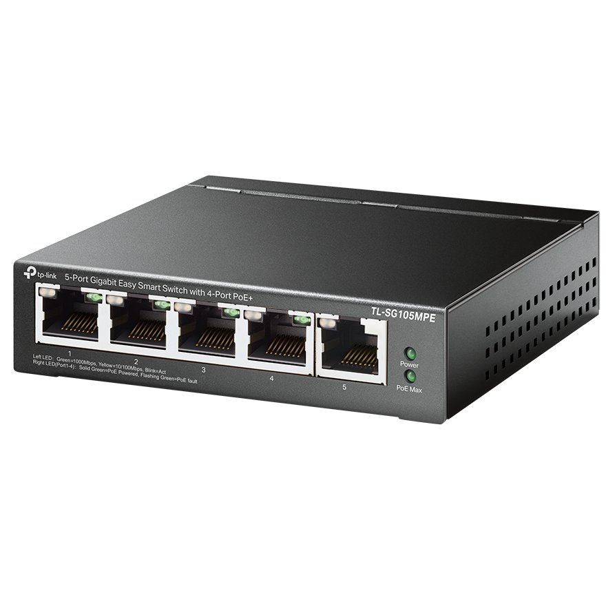 Switch TP-Link TL-SG105MPE, 5 porturi Gigabit, Desktop. – Easy Smart – POE – 10Gbps Capacity – porturi POE: 1-4 – buget POE: 120W