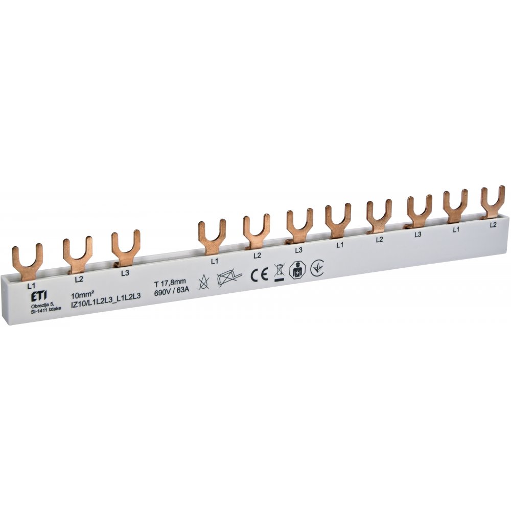 Busbar tripolar 12M 63A tip furca 10mmp IZ10/L1L2L3_L1L2L3 Eti 002921277