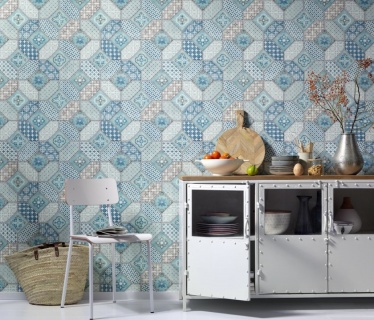 Tapet Komar Imitations 2 model geometric lavabil nuanțe de albastru cod 6315-08 0.53m x 10m 50 mp/rola