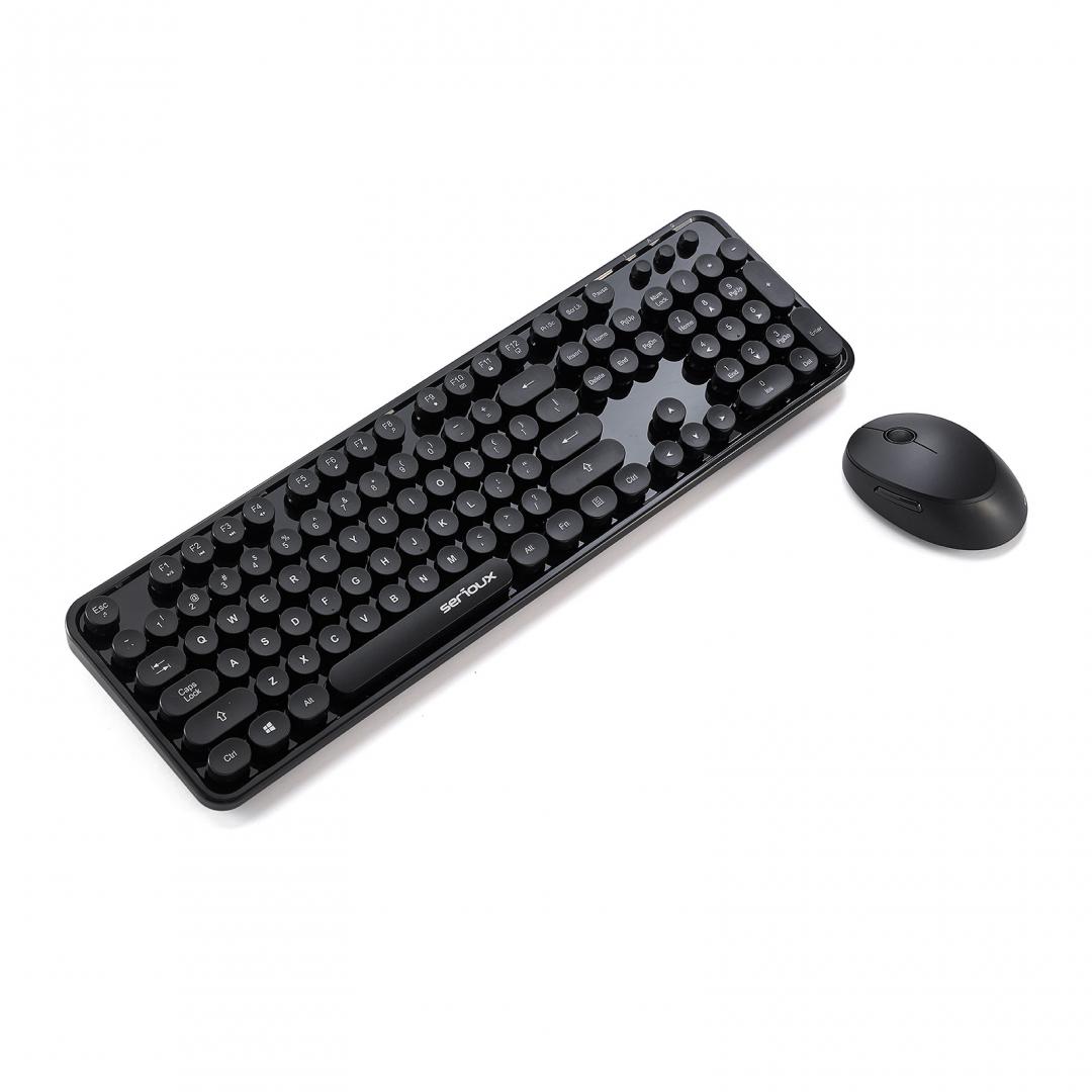 Kit tastatura + mouse Serioux Retro dark 9900BK, wireless 2.4GHz, US layout, multimedia, mouse optic 800-1600dpi, USB, nano receiver, negruGarantie: 36 luni