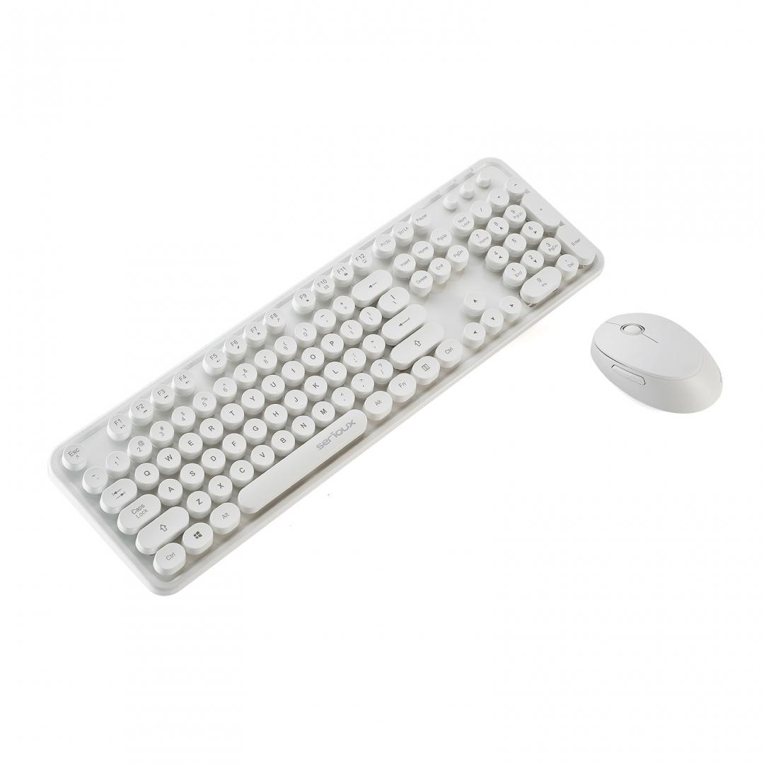 Kit tastatura + mouse Serioux Retro light 9910WH, wireless 2.4GHz, US layout, multimedia, mouse optic 800-1600dpi, USB, nano receiver, albGarantie: 36 luni
