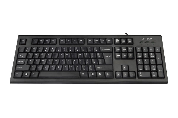 Tastatura Ergonomica USB A4TECH Comfort round, Black (KRS-85-USB), wired cu 104 taste rotunjite, ergonomice si inscriptionate laser