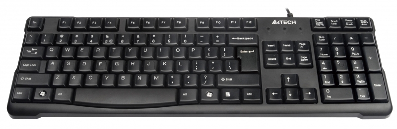 Tastatura USB A4TECH Comfort round Black (KR-750-USB), wired cu 109 taste inscriptionate laser, tasta suplimentara Backspace si rezistenta la apa
