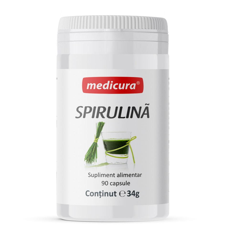 Supliment alimentar cu spirulină -pulbere din alge de apă dulce- în capsule tari de gelatină.