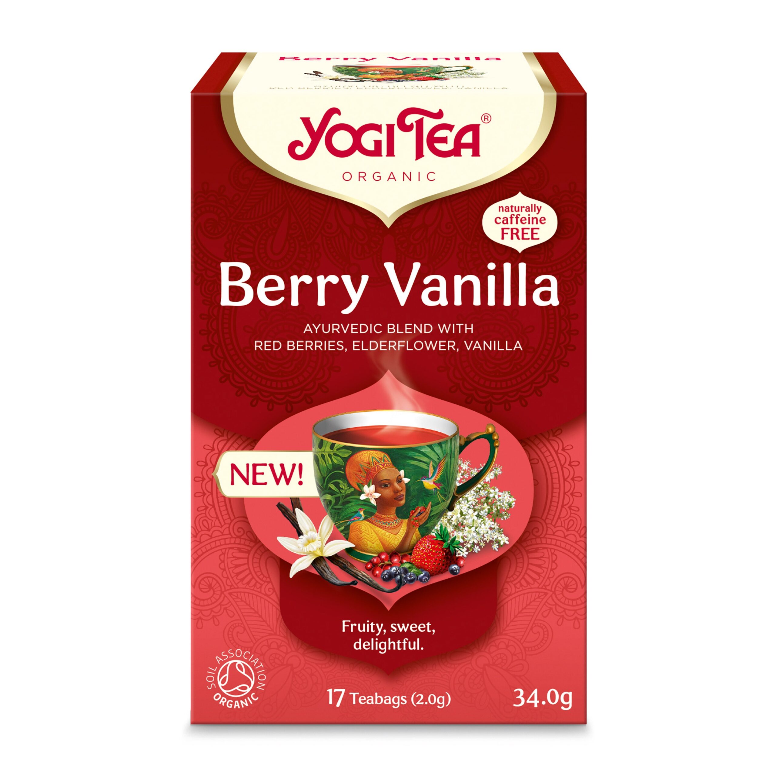 YOGI TEA Berry Vanilla combină fructele de pădure și floarea de soc aromatică cu note delicate de vanilie pentru a crea o experiență gustativă unică pentru simțurile tale. Dulce și plăcut, dar totuși delicat și relaxant, această varietate specială oferă o pauză indulgentă pentru cineva special: tu.